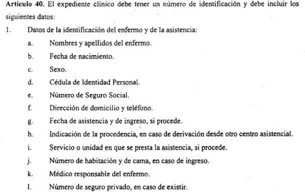 El Capítulo VII de la Ley 68 de 20 de noviembre de 2003 (Artículos VIII del Decreto Ejecutivo en mención, explica todo lo referente al EXPEDIENTE CLÍNICO, Artículos 37 al 50